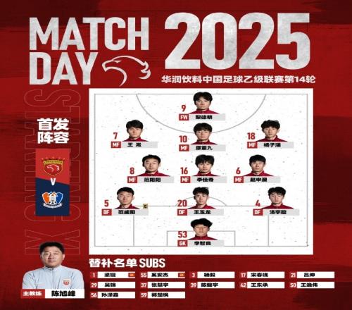 2025华润饮料中乙联赛第14轮,上海海港富盛经开vs江西庐山,今日首发名单。