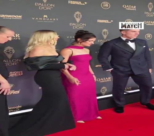 好像有点拘谨约克雷斯与一众阿森纳女将在金球红毯上合影