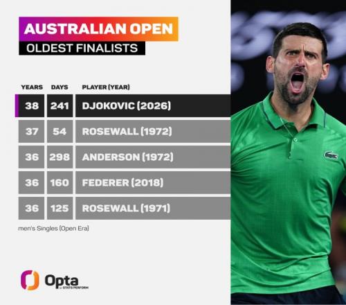 德约科维奇成为公开赛时代以来澳网最年长的男单决赛选手,超越了肯·罗斯沃尔在1972年创下的前纪录。